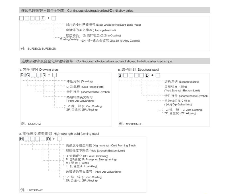 寶鋼產(chǎn)品的牌號(hào)一部分直接使用國(guó)外標(biāo)準(zhǔn)的牌號(hào),一部分采用自己的命名方式命名?,F(xiàn)簡(jiǎn)要介紹寶鋼自己命名的牌號(hào)的方法。