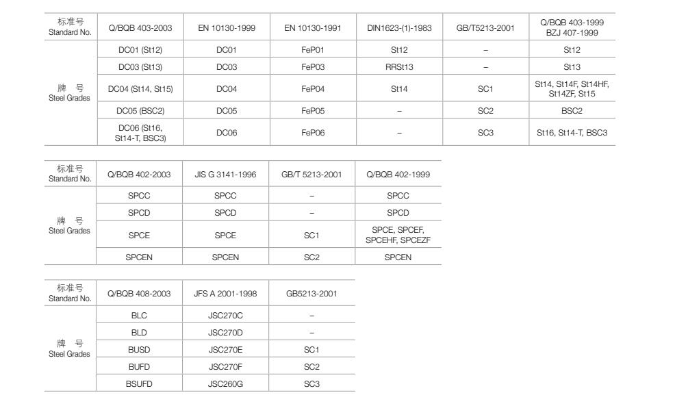 沖壓級(jí):具有比一般用級(jí)較大的延展性,適用于制造沖壓成型及較復(fù)雜變形的零部件 DC03, SPCD, BLD