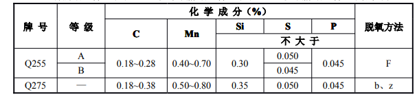 7.在供應(yīng)商品鋼錠(包括連鑄)、鋼坯時(shí),供方應(yīng)保證化學(xué)成分(熔煉分析)符合表2-1規(guī)定,但為保證軋制鋼材各項(xiàng)性能符合本標(biāo)準(zhǔn)要求,各牌號(hào)A、B級(jí)鋼的化學(xué)成分可以根據(jù)需要進(jìn)行適當(dāng)調(diào)整,另訂協(xié)議。幕墻行業(yè)常選用:對(duì)焊接結(jié)構(gòu)Q235-BF,Q235-BF,Q235-BF,Q235-BF,對(duì)非焊接結(jié)構(gòu)Q235-A。
