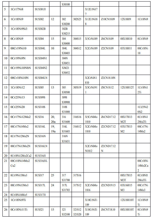 3、各國(guó)不銹鋼標(biāo)準(zhǔn)牌號(hào)對(duì)照表(參考件)