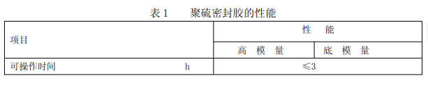 按我國標(biāo)準(zhǔn),聚硫密封膠性能應(yīng)符合表 1 的要求