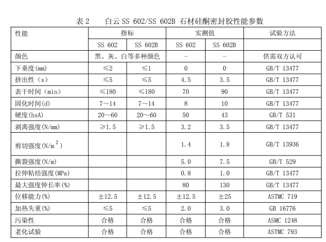 其中 SS 602B 的位移能力大于或等于± 25%,達(dá)到幕墻用耐侯密封膠要求,并不會對石材造成污染。